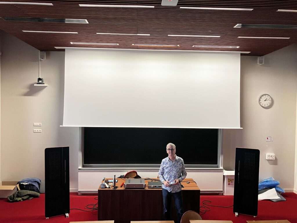 Dans le cadre de la Licence Professionnelle Acoustique, les étudiants ont eu l’opportunité d’assister à une démonstration proposée par l’entreprise Diptyque Audio, installée à Montauban et partenaire de la formation puisqu’elle accueille cette année l’un des alternants de la promotion. Fondée par Gilles Douziech, l’entreprise conçoit et fabrique des haut-parleurs plan électrodynamiques — une technologie rare en France — reconnus pour leur grande fidélité de restitution sonore. À cette occasion, le dirigeant est venu présenter les principes de cette technologie, échanger avec les étudiants sur les aspects de conception et de fabrication, et surtout proposer une séance d’écoute commentée autour de différents styles musicaux, du jazz au classique en passant par l’électro. Cette rencontre a permis d’illustrer concrètement le lien entre innovation industrielle, savoir-faire local et formation en acoustique.